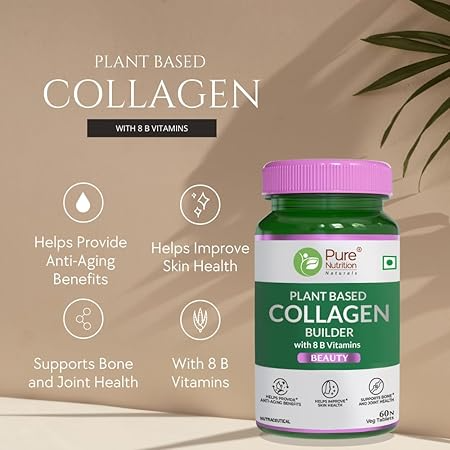 Boost your beauty with Pure Nutrition’s Plant-Based Collagen Builder. This vegan supplement features 8 essential B vitamins to promote glowing skin, strong hair, and resilient nails. Formulated to support bone and joint health, it’s the perfect addition to your daily routine for overall wellness. Enjoy a natural approach to enhancing your beauty from within