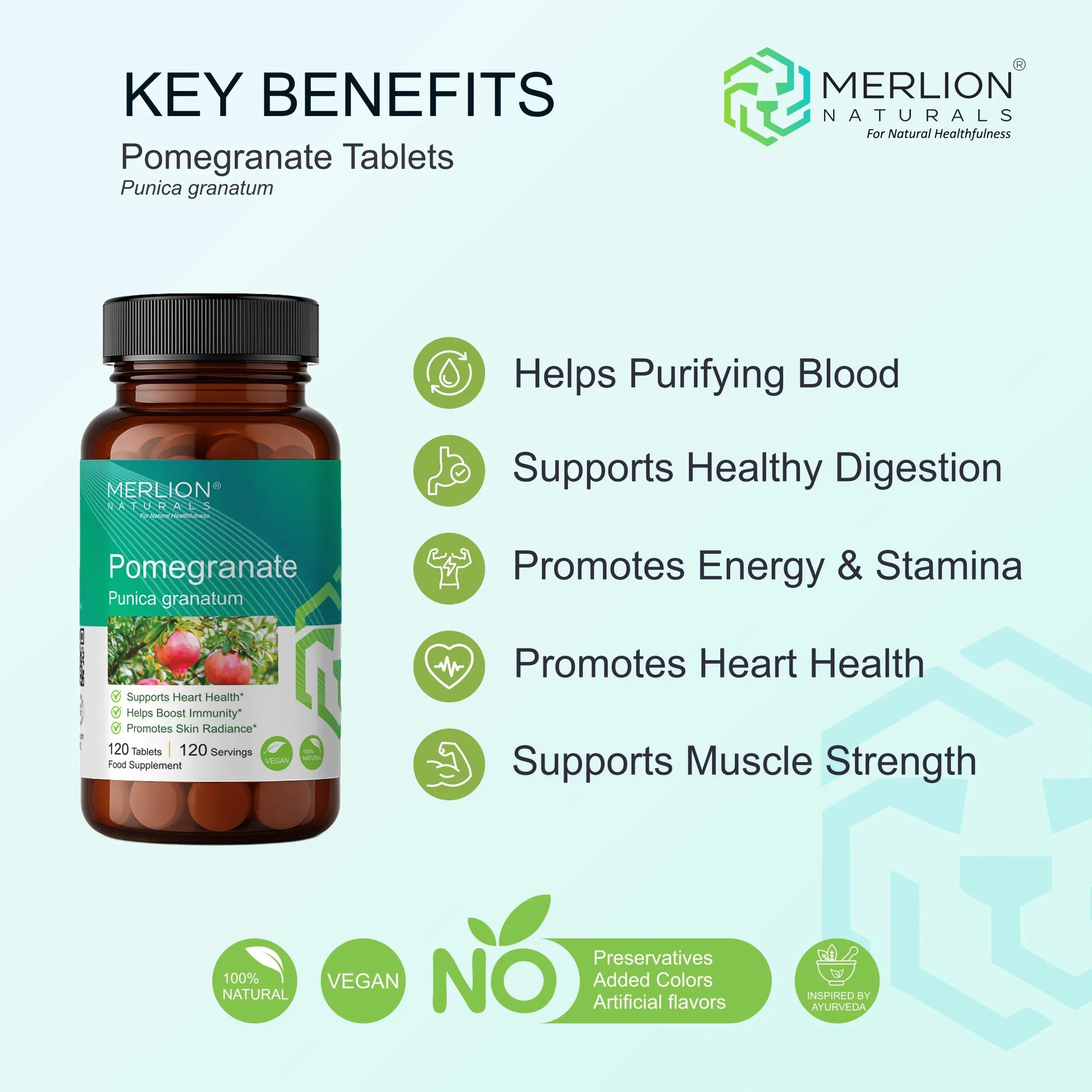 Merlion Naturals Pomegranate Tablets provide a high-potency 500mg formulation. Experts highly recommend “Dadima” for its rare ability to nourish the blood while supporting the heart, making it a cornerstone for holistic cardiovascular therapy.