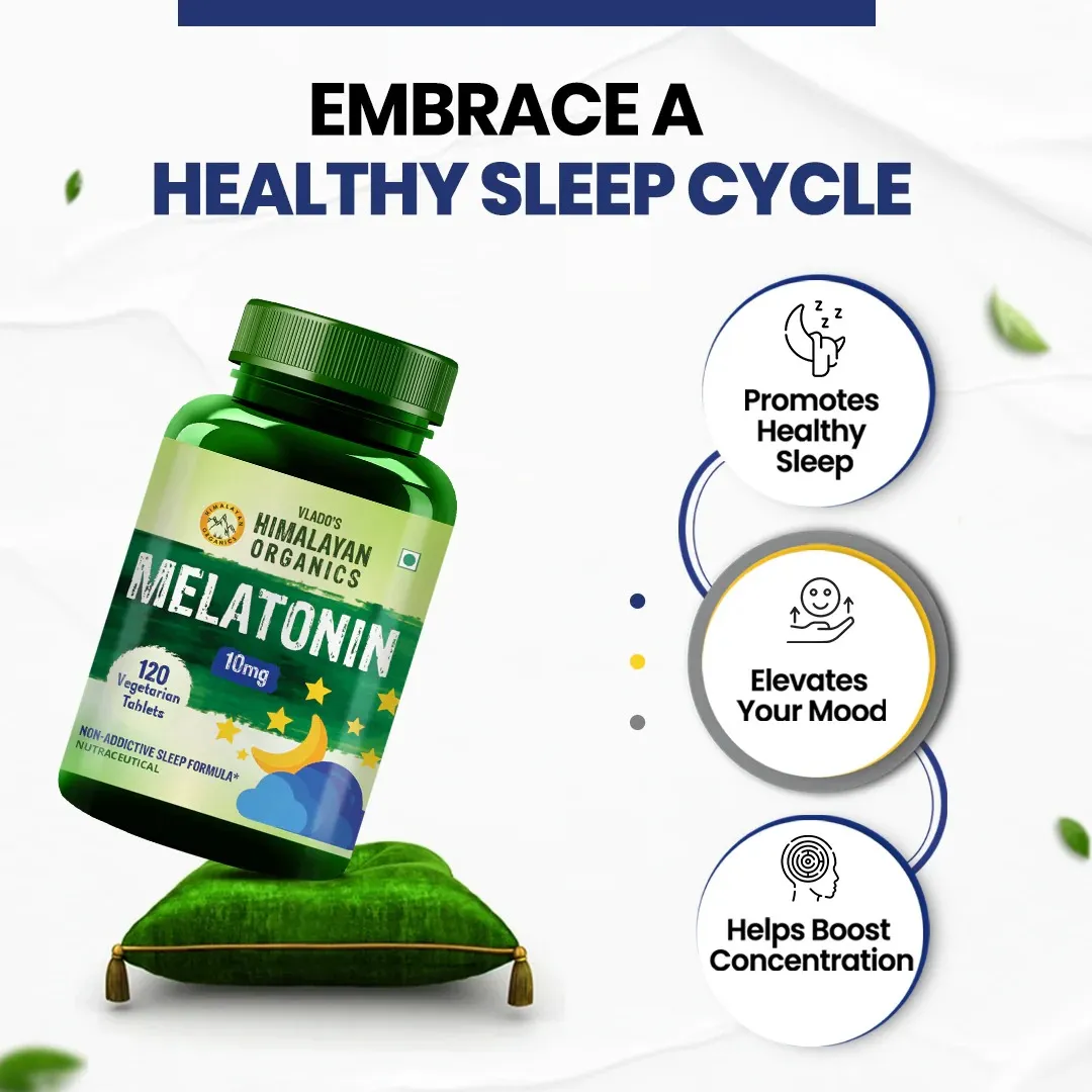 Experts recommend melatonin as a safe, effective way to reset the body’s biological clock without dependency. Himalayan Organics Melatonin 10Mg stands out with its vegan, clean-label formulation that supports both neurological calm and long-term sleep hygiene.