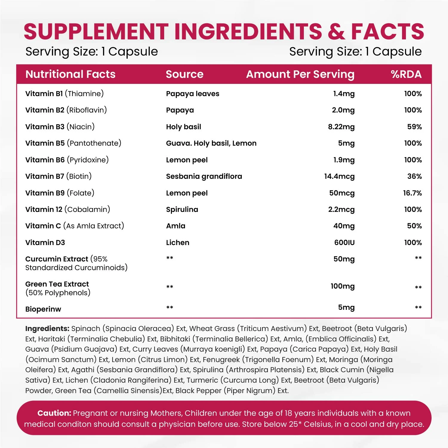 - Sea Buckthorn, Green Amla, Spirulina, Acai Berry – Rich in antioxidants to support skin and immune health